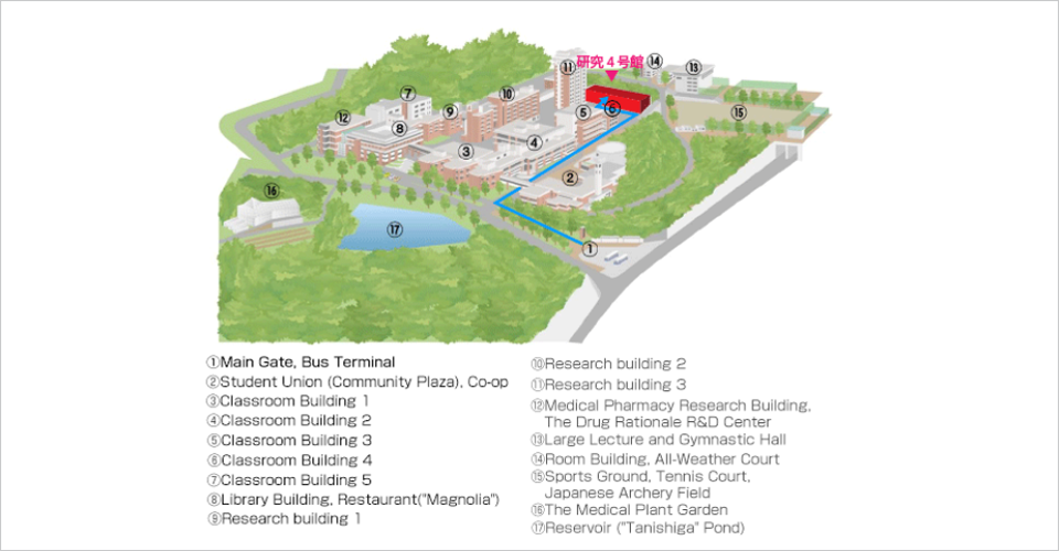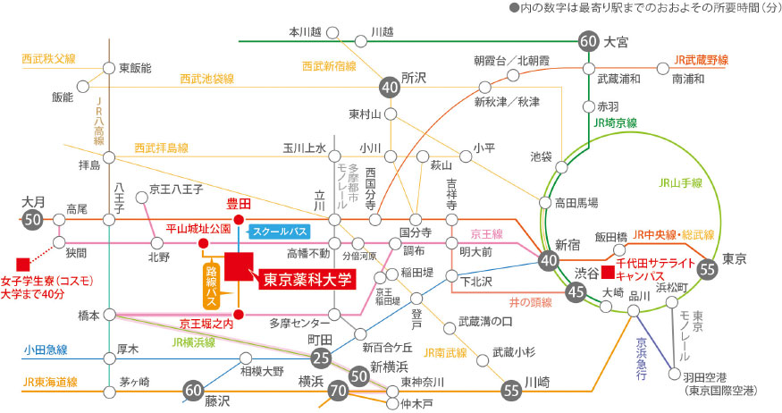 - 8 mins by school bus from TOYODA sta. on the Chuo-line.